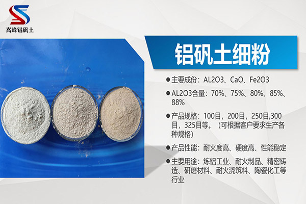 高鋁細(xì)粉常用規(guī)格:100目,200目,250目,300目,325目(也可按照客戶要求定制加工)